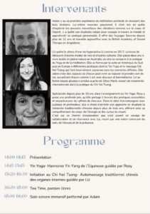 🌊 *Voyage sonore* – guidé par Adam, musicien australien, à travers un paysage sonore aux influences tribales, où les vibrations accompagnent le corps vers un lâcher-prise profond.